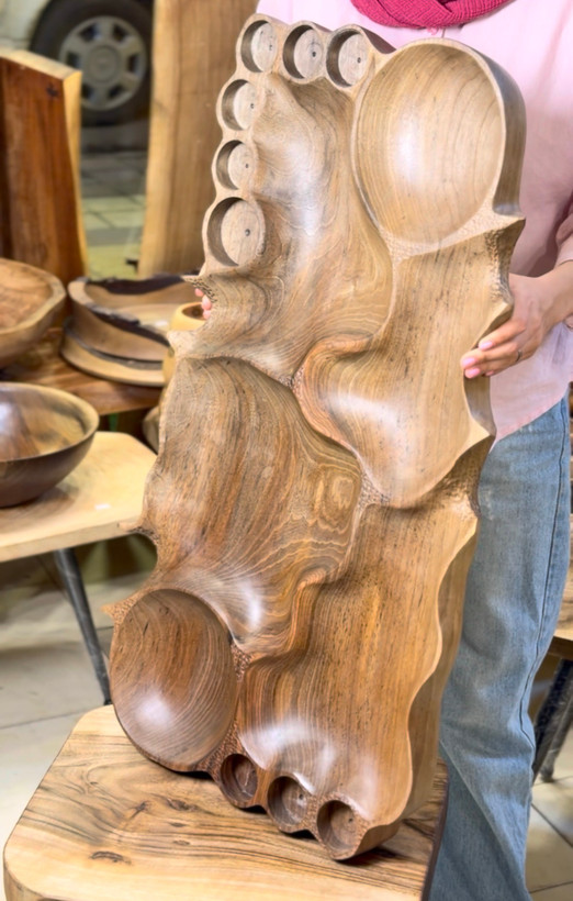طراحی این میز مزه به گونهای است که بخشهای مختلف برای سرو مزه، اردور، میوه یا دسر را در خود جای داده و ظاهر چشمگیری به میز پذیرایی میدهد. بافت و رنگ طبیعی چوب گردو در هر قطعه متفاوت است و همین ویژگی، هر میز را به اثری منحصربهفرد تبدیل میکند.