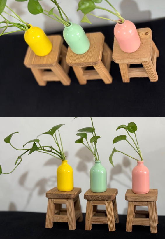 چهارپایه چوبی مینیاتوری، یک دکور ساده و جمعوجوره که برای میز کار، شلف، اتاق کودک، کافه یا هر فضای کوچیک جواب میده. تمام چهارپایهها از چوب طبیعی ساخته شدهن و فرمشون کاملاً شبیه چهارپایه واقعی اما در ابعاد کوچک طراحی شده؛ یعنی هم استحکام دارن، هم ظاهرشون واقعی و قابل قبول از نظر جزئیات.