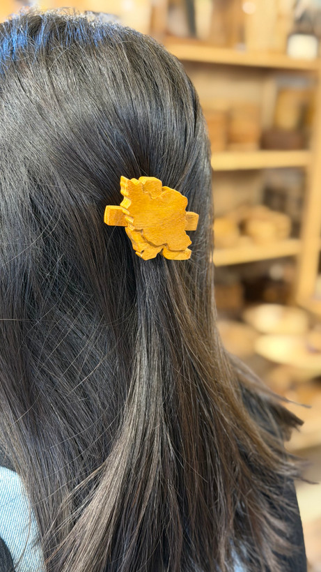 این گیره مو چوبی با طرح نقشه ایران، یک اکسسوری دستساز و متفاوت است که از چوب طبیعی ساخته شده و با دقت پرداخت شده است.