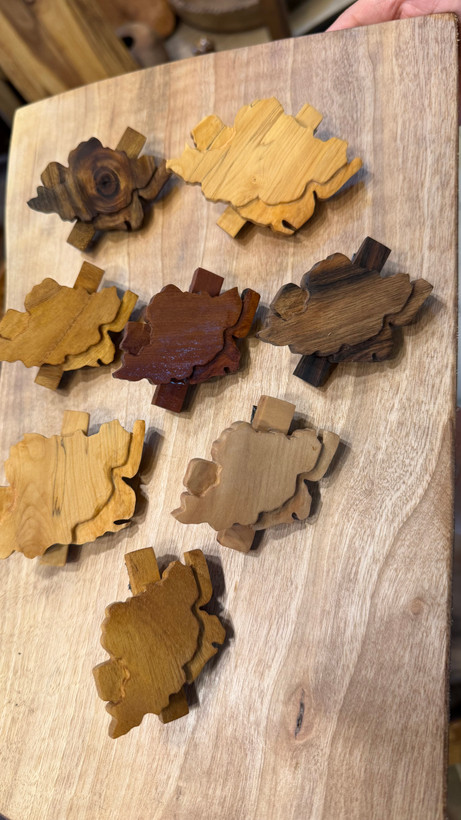 گیره موی چوبی دستساز با طرح نقشه ایران، ساختهشده از چوب طبیعی. سبک، خاص و مناسب استفاده روزمره و هدیه.